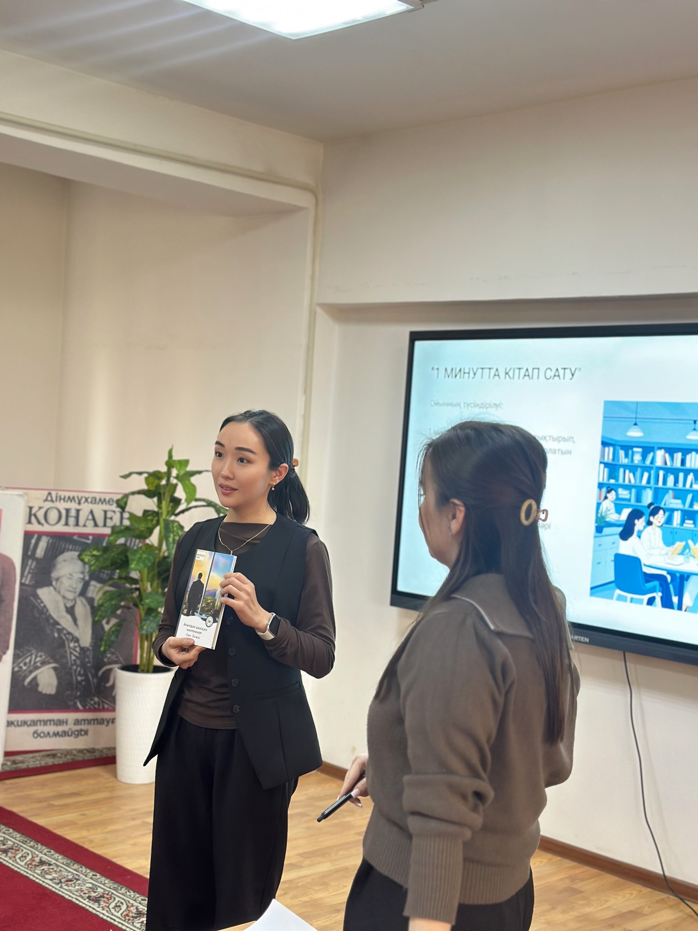 Жас оқырмандар кеш қонағына сұрақтар қойып, кеңінен ақпарат алды. Тақырыпқа сай кітап көрмесіне шолу жасалды.