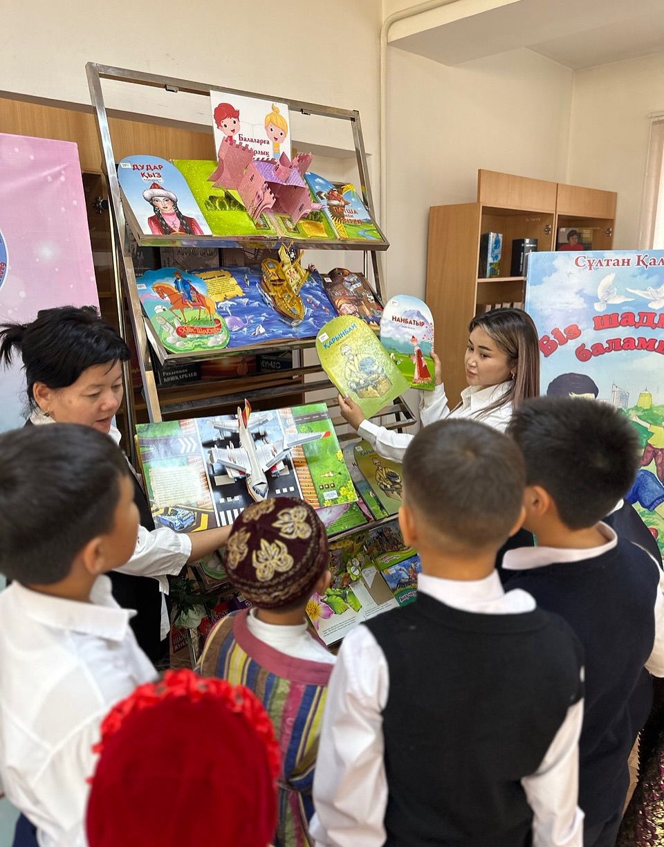 Кітапхана қызметкері «Кітап сөйлейді, бала тыңдайды» атты көрмеге шолу жасап, балалардың кітапқа деген қызығушылығын тудыратын қазақ ертегілері мен сөйлейтін кітаптарды, танымдық энциклопедияларды оқырмандар назарына ұсынды.
