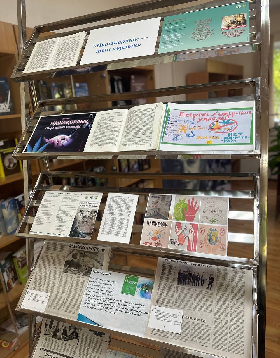 Қоғамдағы ең өзекті мәселелердің бірі — нашақорлыққа қарсы күреске арналады. Көрмеде нашақорлықтың: адам денсаулығына, психологиясына, отбасы мен қоғамға келтіретін зияны жайлы әдебиеттер ұсынылған.