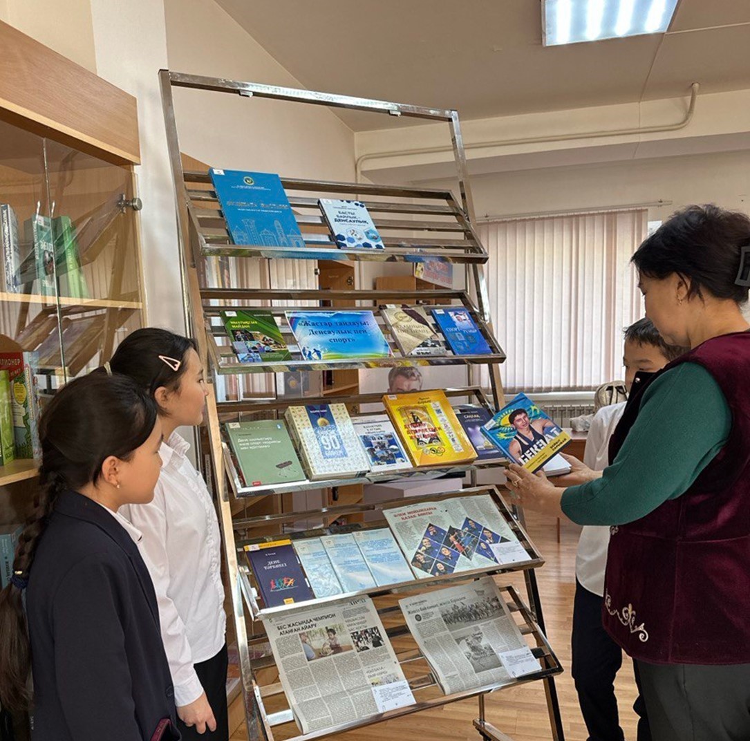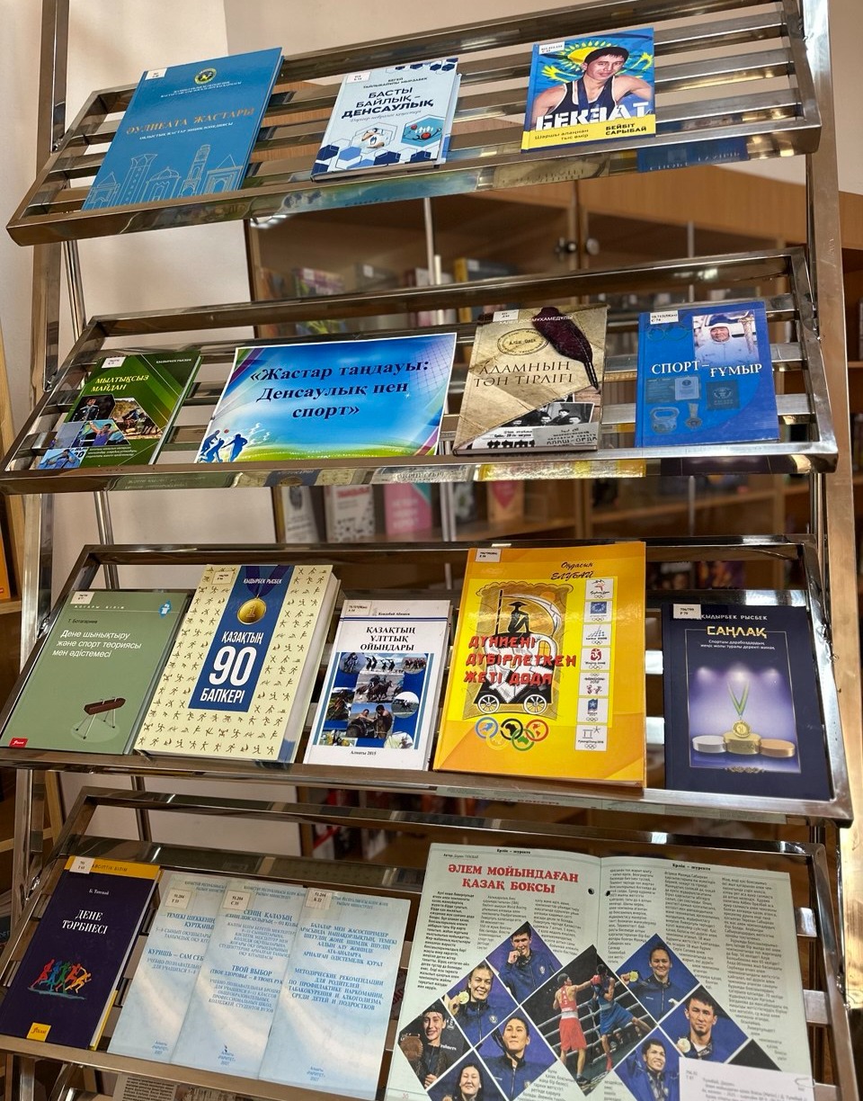 «Заң және жасөспірім» жобасы аясында жастар арасында салауатты өмір салтын насихаттау, зиянды әдеттерден алыстату, Қазақстанның бүгінгі күні танымал спортшыларының үлгілі-өнегелі өмірлері туралы шыққан әдебиетермен таныстыру мақсатында «Жастар таңдауы: Денсаулық және спорт» тақырыбында кітап көрмесі ұйымдастырылды.