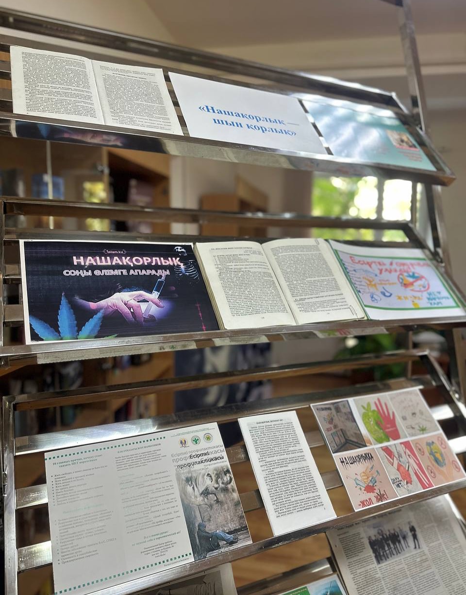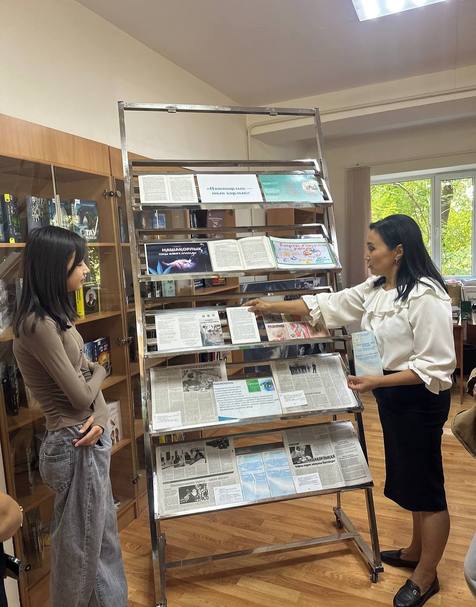 Қоғамдағы ең өзекті мәселелердің бірі — нашақорлыққа қарсы күреске арналады. Көрмеде нашақорлықтың: адам денсаулығына, психологиясына, отбасы мен қоғамға келтіретін зияны жайлы әдебиеттер ұсынылған.