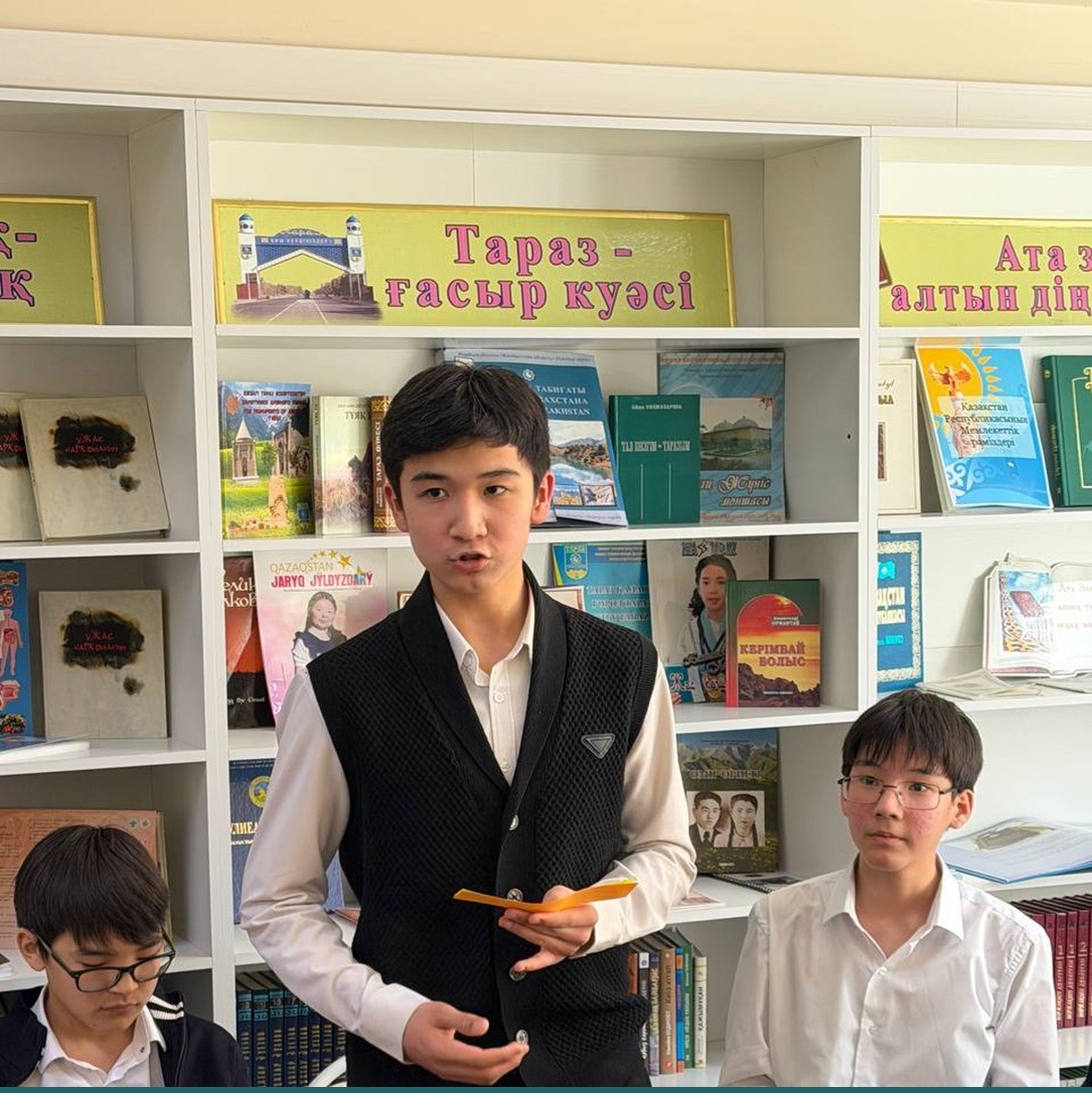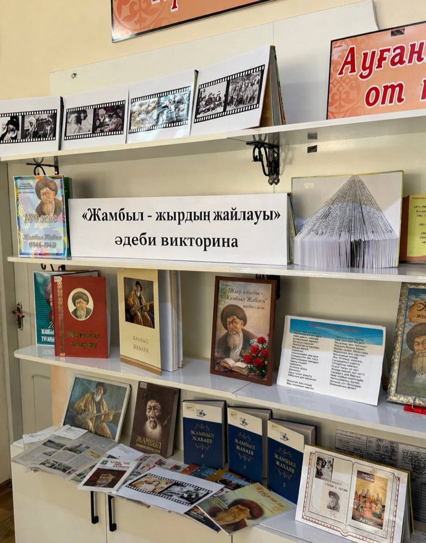Қазақ халқының ұлы ақыны, айтыс өнерінің дүлдүлі, ғасыр жасаған дарын иесі Жамбыл Жабаевтың өнегелі өмір жолын танып, шығармашылығын үлгі ету мақсатында «Жамбыл – жырдың жайлауы» әдеби викторина өткізілді.