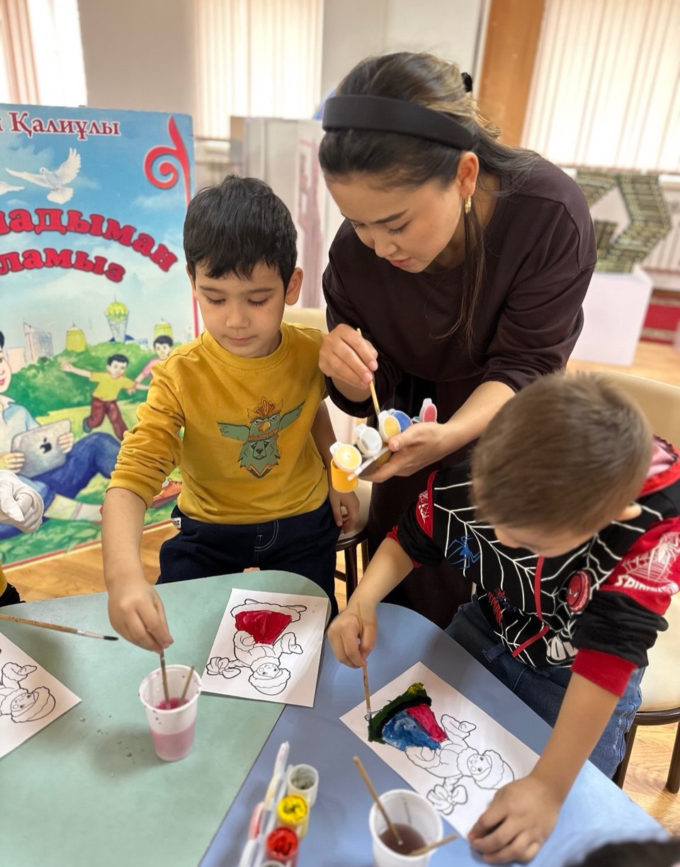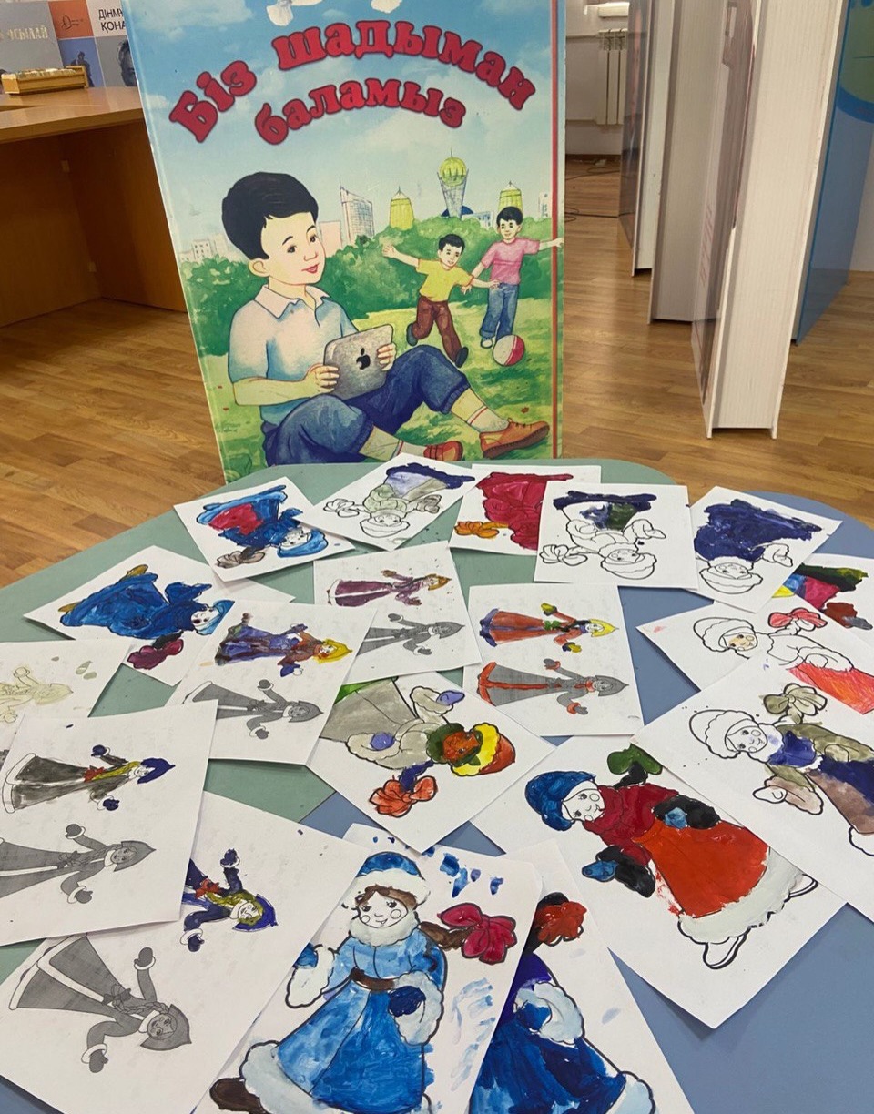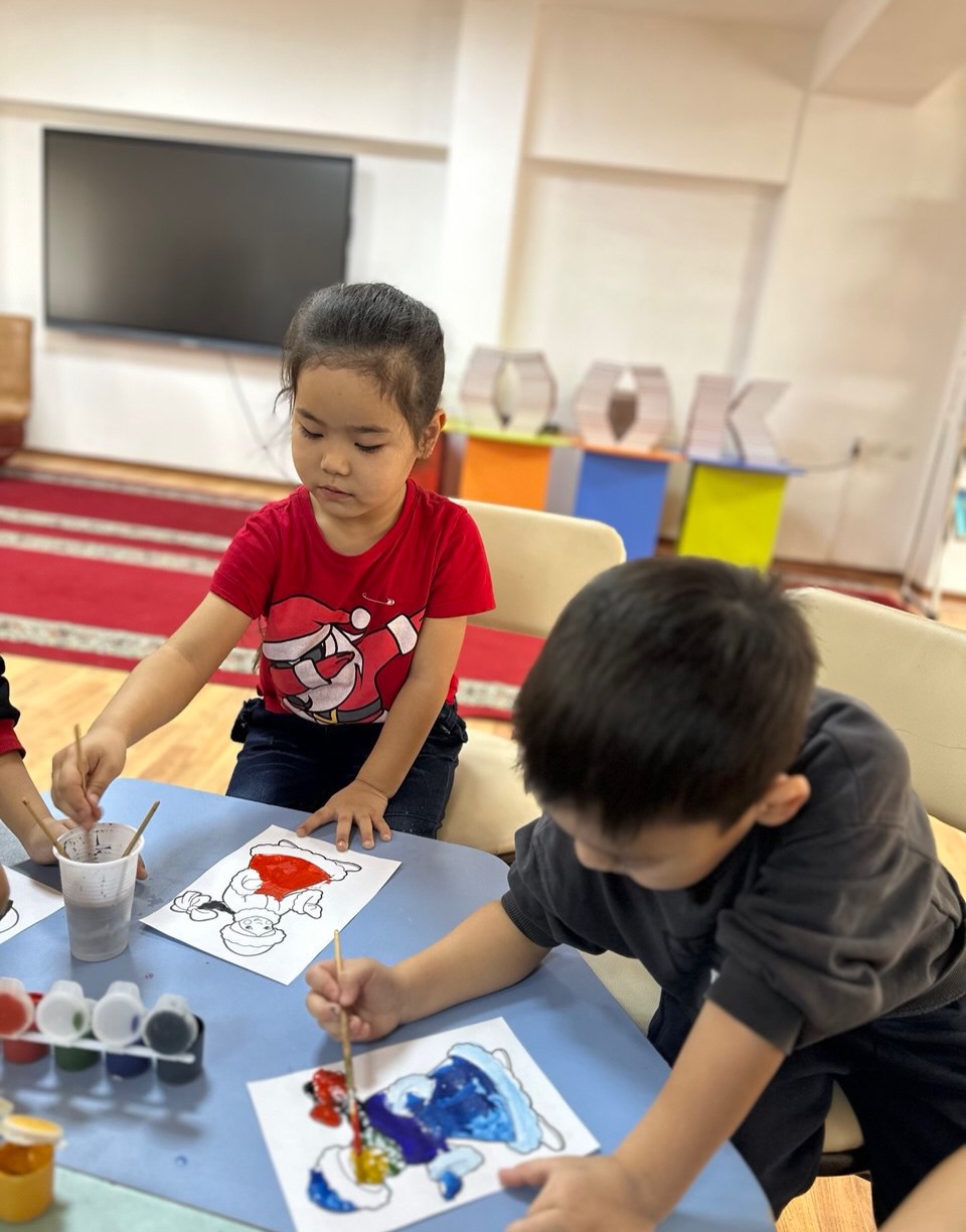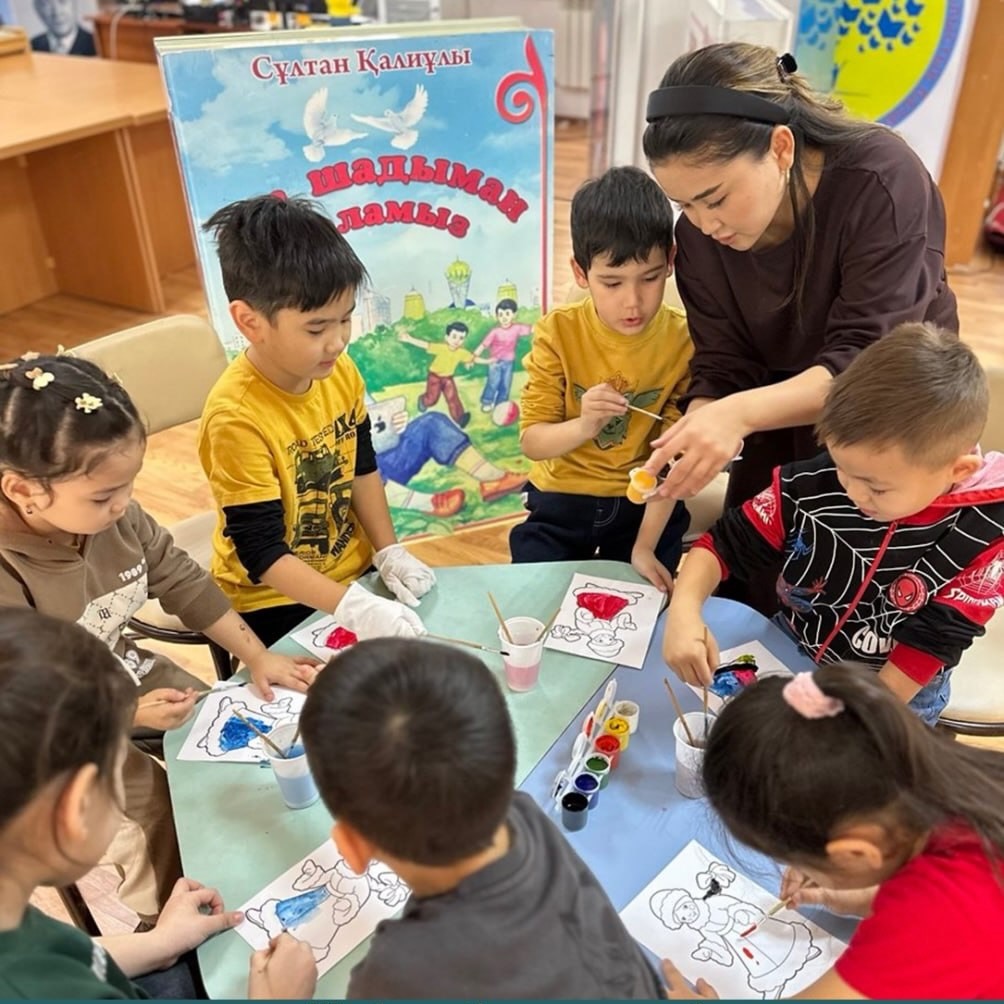 Түрлі-түсті акварельмен жұмыс жасау мақсатында «Шабыт» балалар клубының тұрақты оқырмандары сурет салып үйренді.