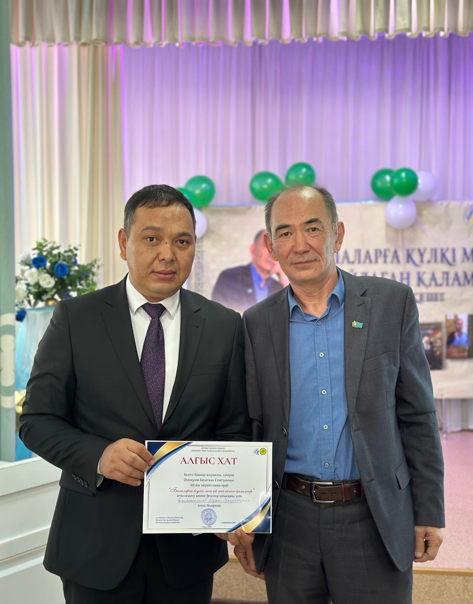 Балалар жазушысы, сатирик, Қазақстан журналистер одағының мүшесі Әлімқұлов Бақытжан Советұлының 60 жас мерейтойына орай «Балаларға күлкі мен ой сыйлаған қаламгер» атты кездесу кеші өтті.
